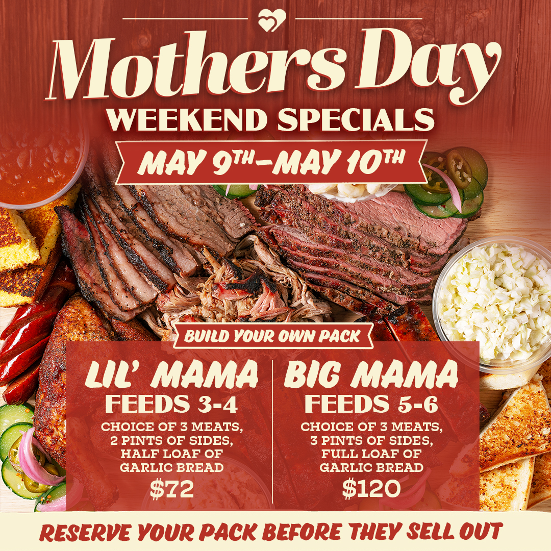 Mother’s Day weekend is May 9th–10th, and we’re making it easy with our build-your-own packs. Pick your favorite meats, sides, and enough food to feed the whole table without anyone breaking a sweat.